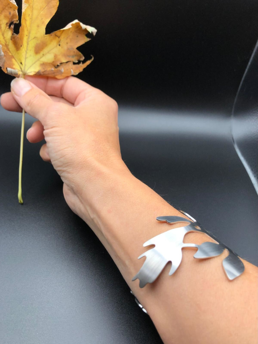 Bracciale regolabile in puro acciaio inox. Leggerissimo e indossabile in diversi modi. Apertura davanti, apertura dietro, caviglia.